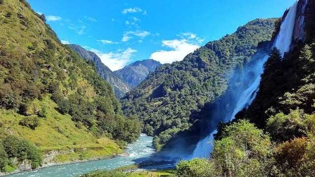 The Nuranang River, which flows through a thick forest before cascading down a sheer cliff, creates the Nuranang Waterfall. It rises in the Sela Pass. The waterfall, which is surrounded by lush vegetation and snow-capped mountains and has a height of about 100 metres (330 feet), is a beautiful sight to see.